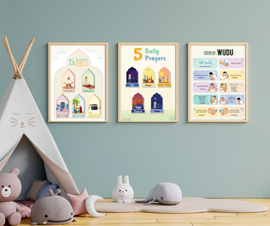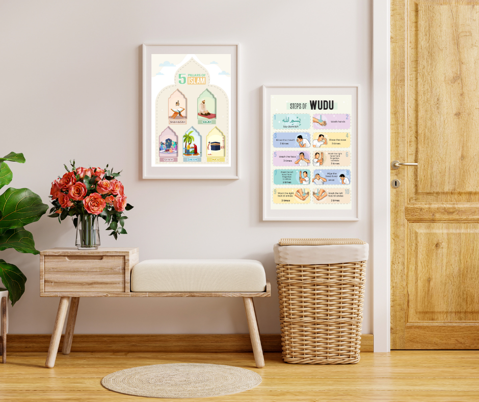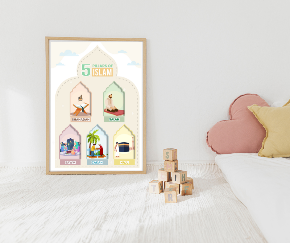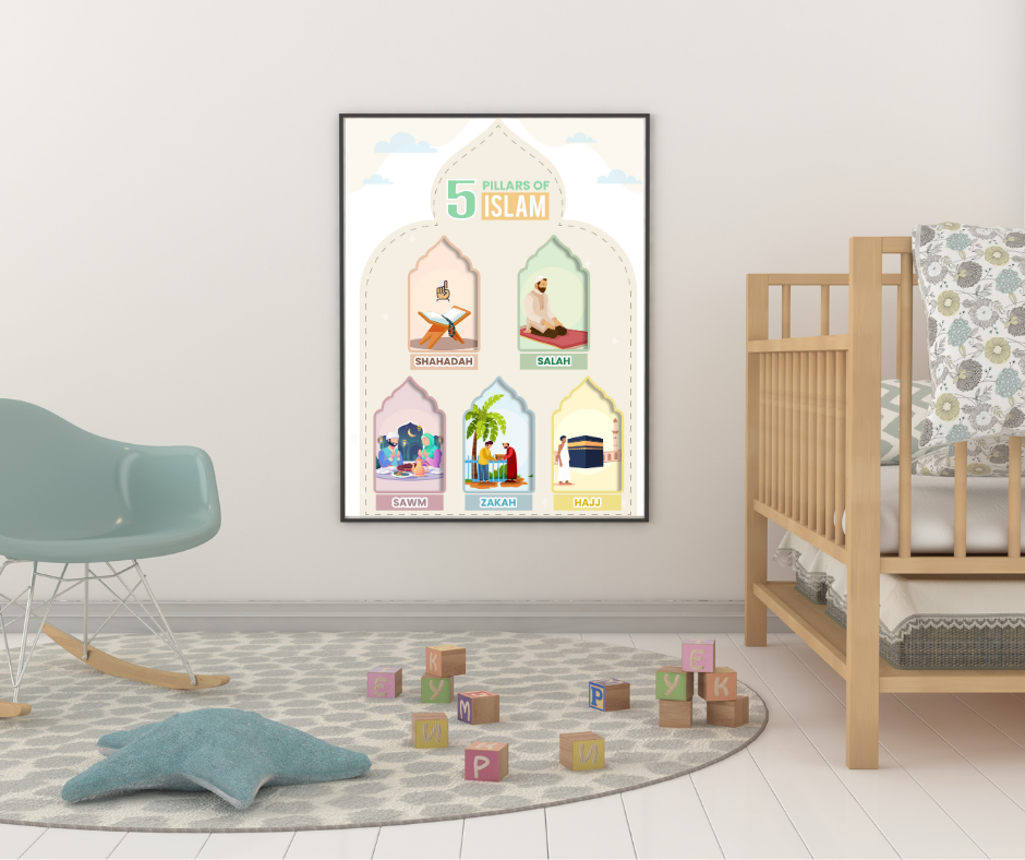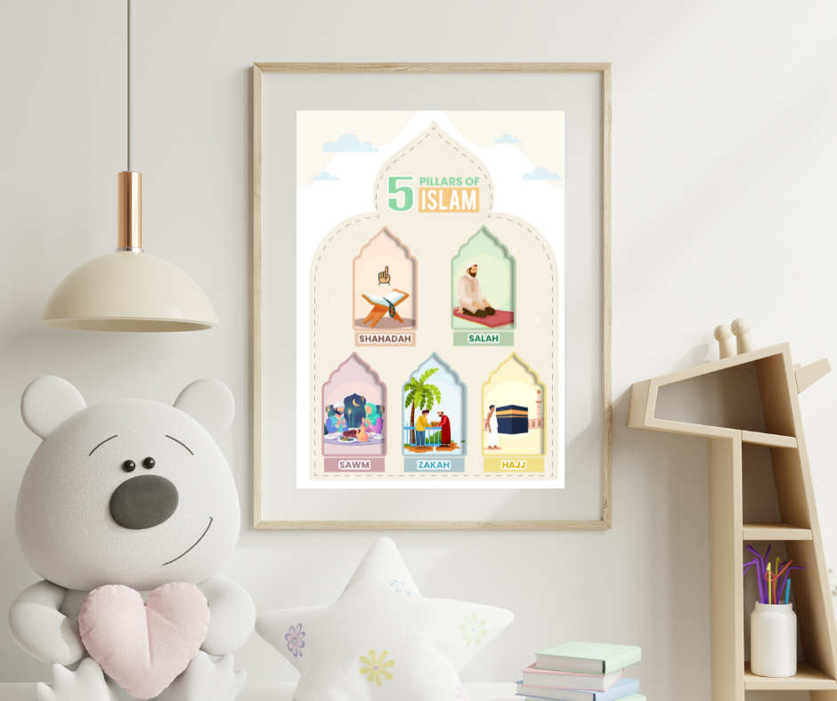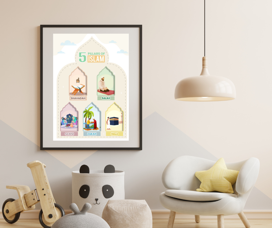 Add a touch of educational beauty to your space with this 5 Pillar of Islam Poster. It's the perfect way to learn the foundations of Islamic faith while sprucing up your home! Learn while you're looking your best. (16 x 20" High Quality Print)