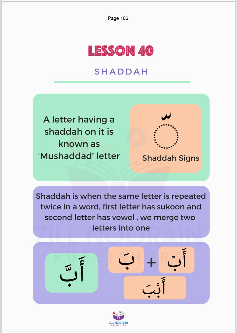 Discover the magnificence of reciting the Quran with Zill Noorain's Quranic Qaidah! Support Arabic or non-native Arabic speakers in their effort to learn Uthmanic Script and Tajweed rules, with simple drills to help them get there gradually. Become a recitation pro in no time!